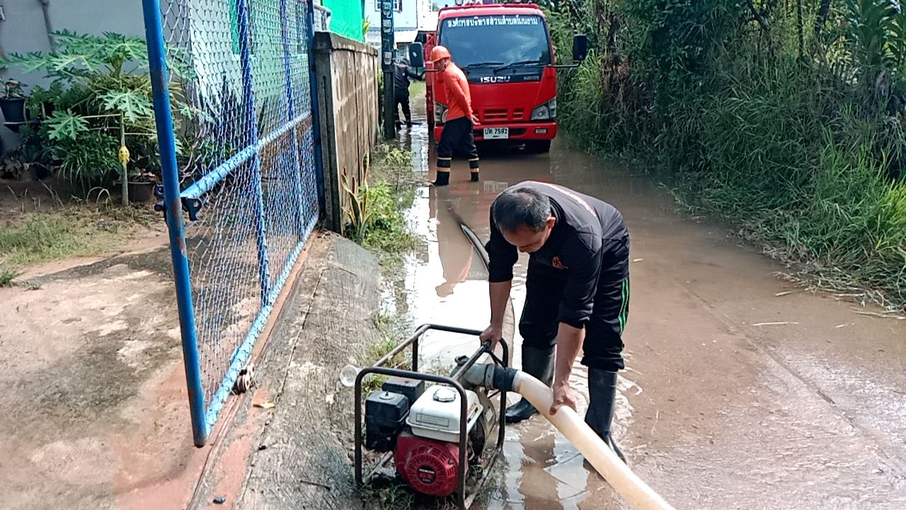 วันที่ 23 กันยายน 2568 เจ้าหน้าที่งานป้องกันและบรรเทาสาธารณภัย ลงพื้นที่ร่วมแก้ปัญหาน้ำท่วมขังเบื้องต้นให้กับชุมชน บ้านม่วง หมู่ที่ 5 ตำบลโพนงาม