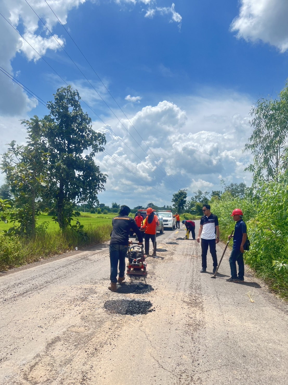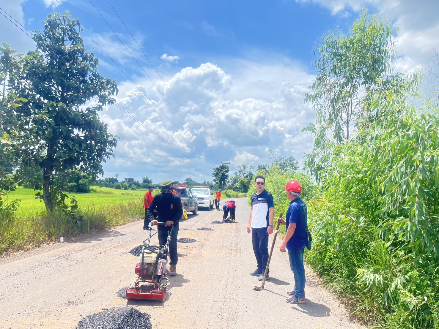 เจ้าหน้าที่งานป้องกันและบรรเทาสาธารณภัย ลงพื้นที่ซ่อมแซมถนนที่ชำรุด ถนนเส้นบ้านม่วง หมู่ที่ 5 - ถนนลาดยางบ้านโพนงาม-บ้านแดง ตำบลโพนงาม อำเภอกุดชุม จังหวัดยโสธร เพื่อให้ประชาชน ...