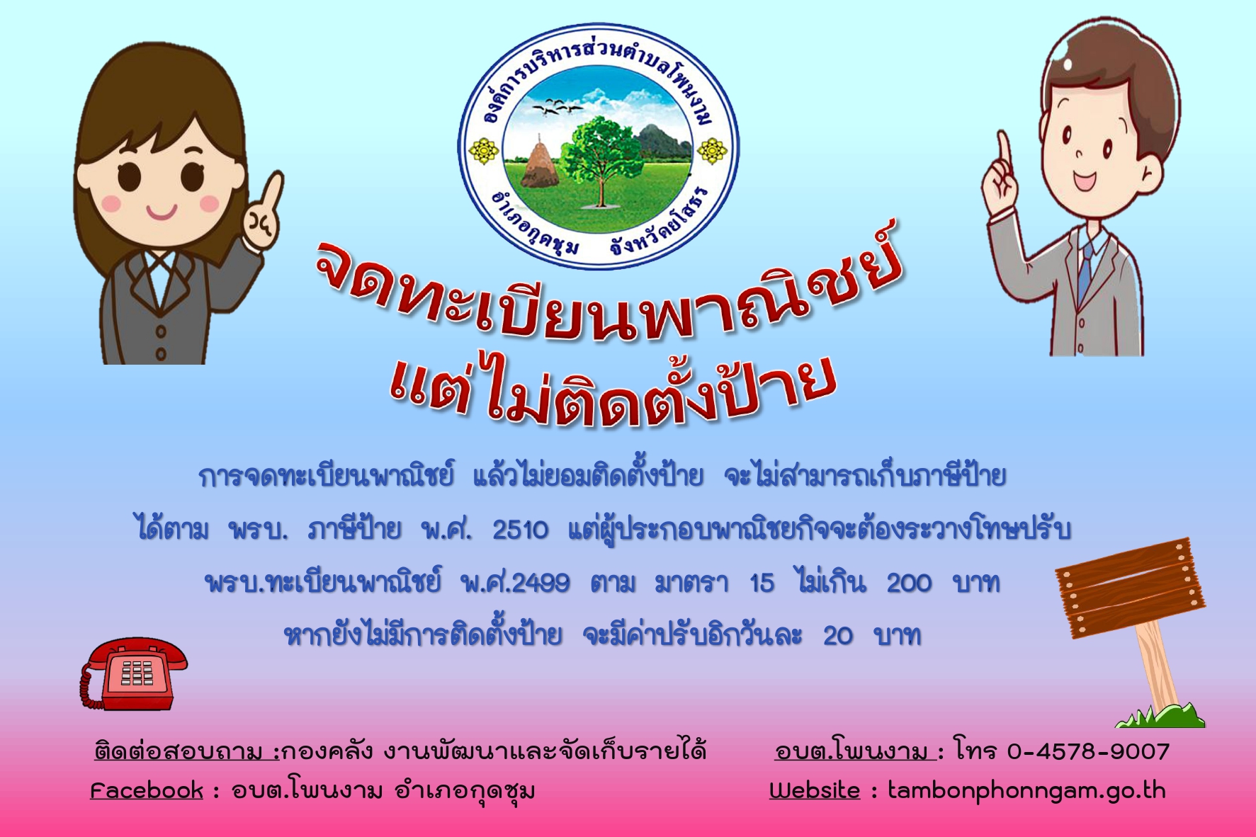 องค์การบริหารส่วนตำบลโพนงาม อำเภอกุดชุม จังหวัดยโสธร : www.tambonphonngam.go.th