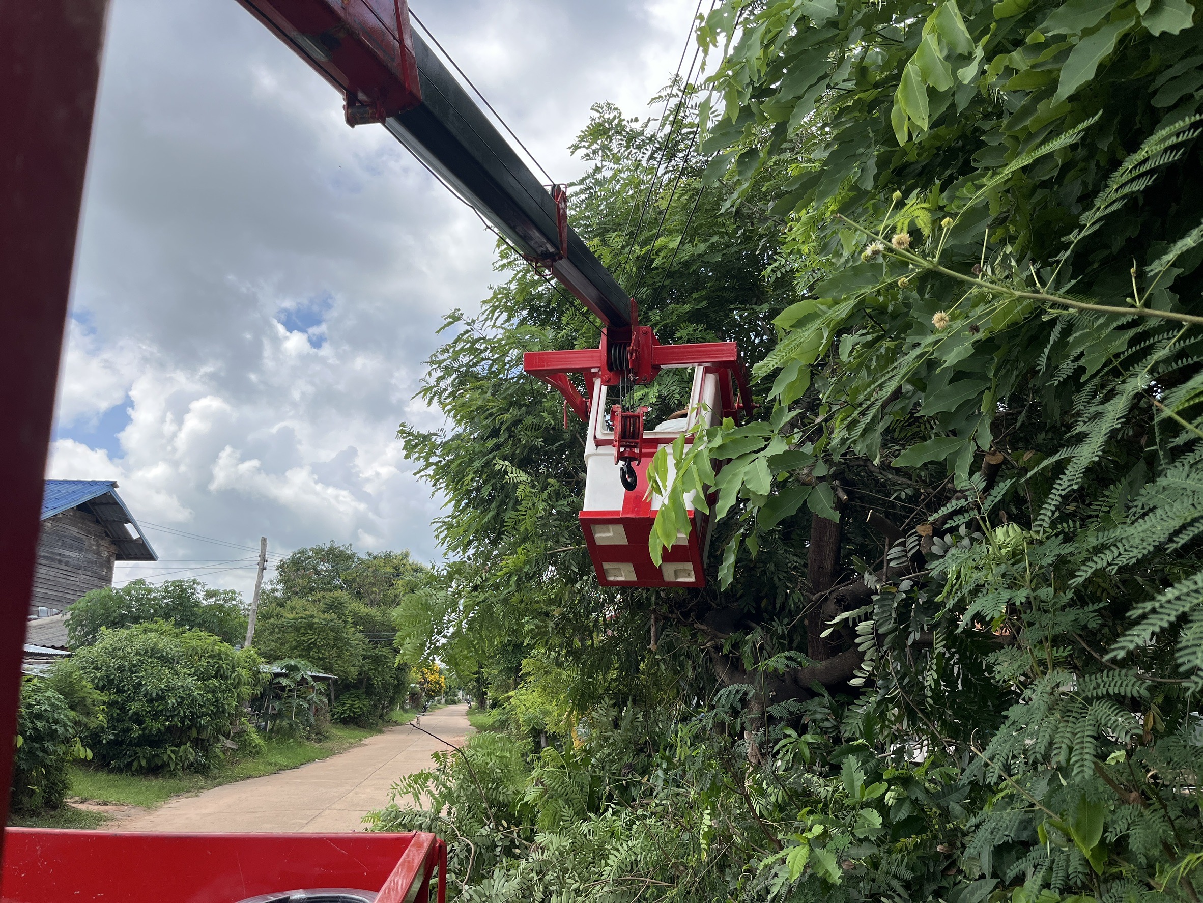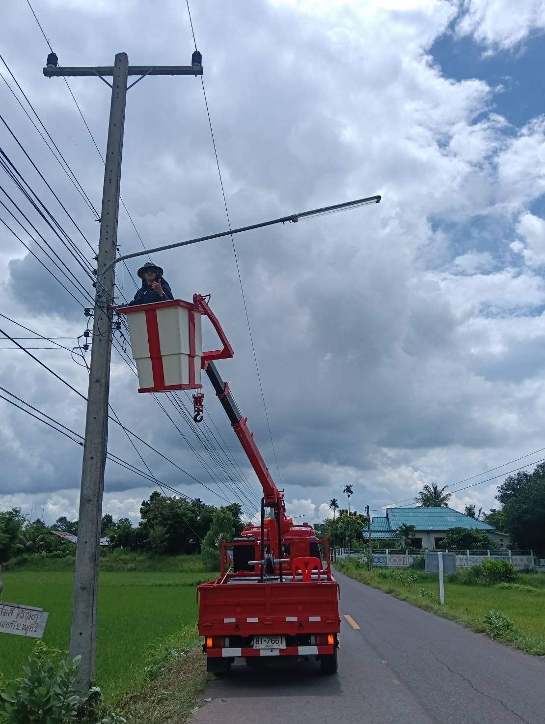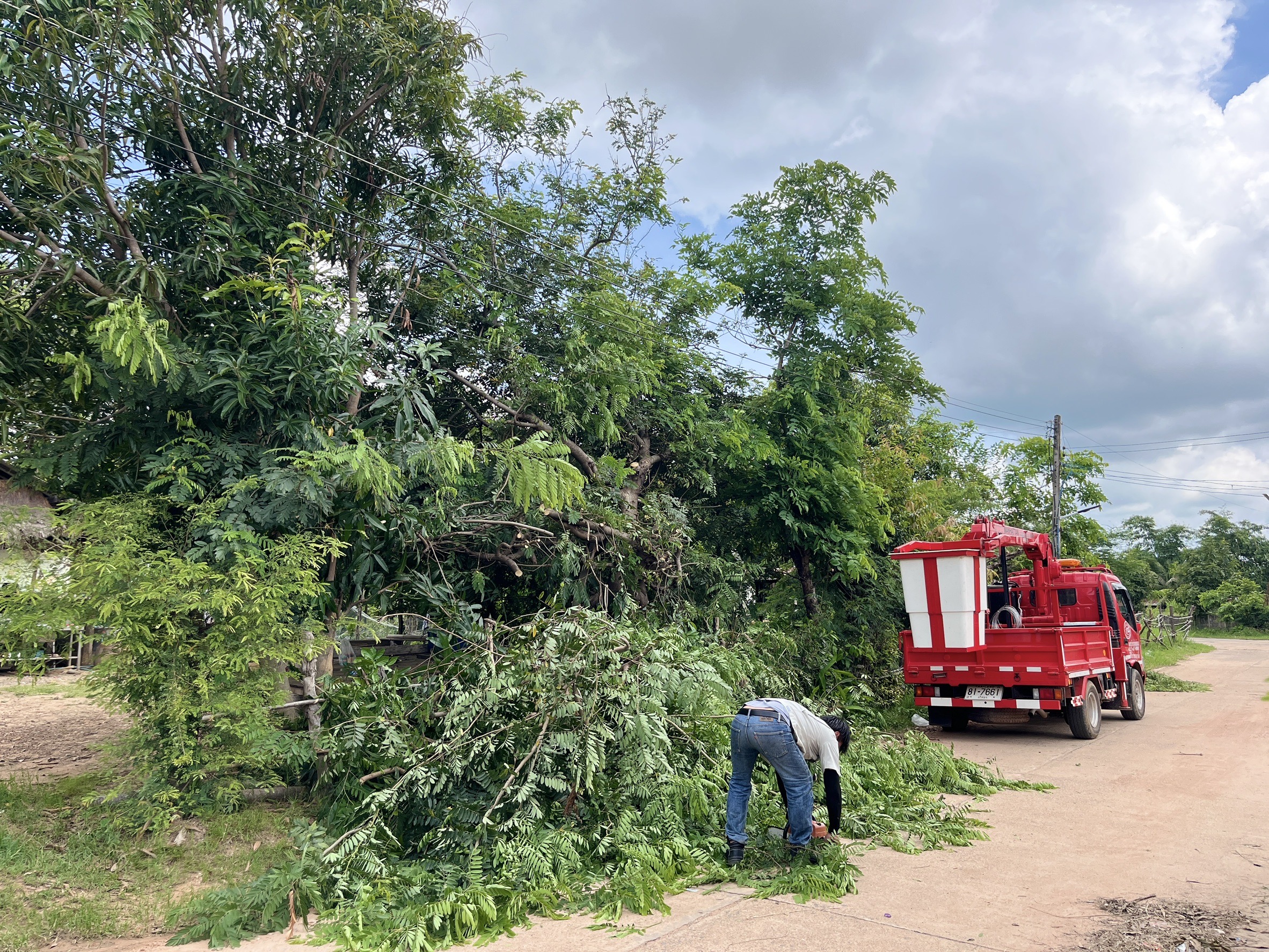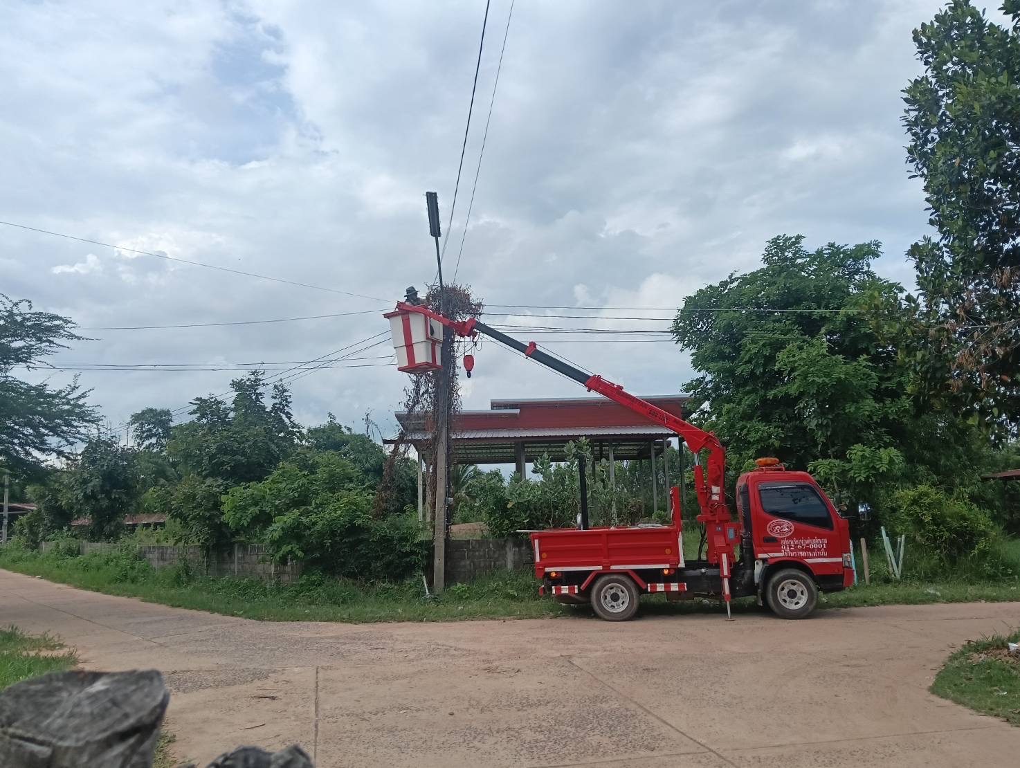 เจ้าหน้าที่งานซ่อมบำรุงไฟฟ้า กองช่าง ลงพื้นที่เดินสายดับเและติดตั้งโคมไฟส่องสว่าง(เพิ่มเติม) พร้อมตัดแต่งกิ่งไม้พันสายไฟ เพื่อป้องกันอันตรายที่อาจเกิดจากสายไฟฉีดขาด ในเขตพื้นที่บ้านหนองแซง หมู่ที่ 15 ตำบลโพนงาม อำเภอกุดชุม จังหวัดยโสธร