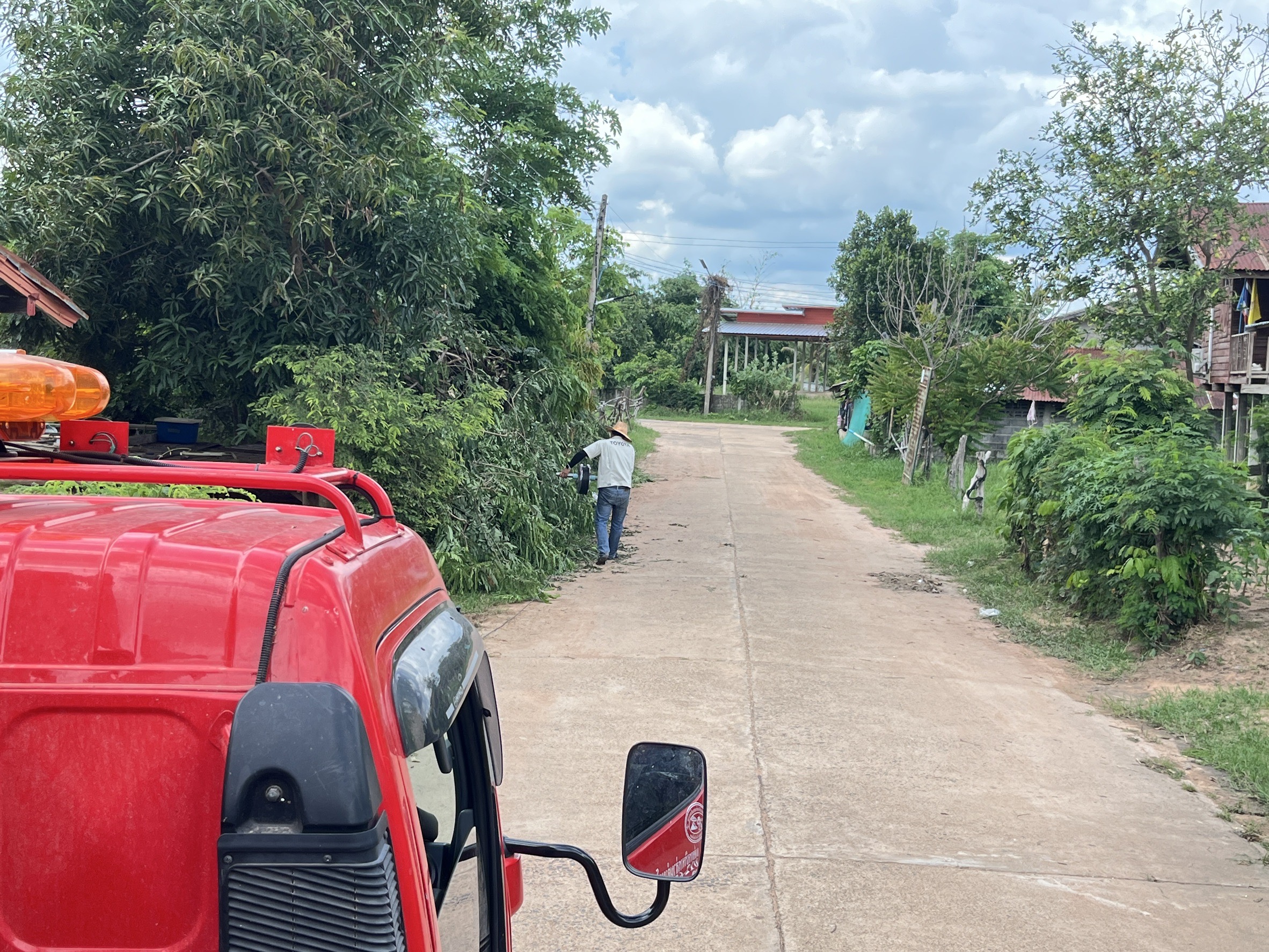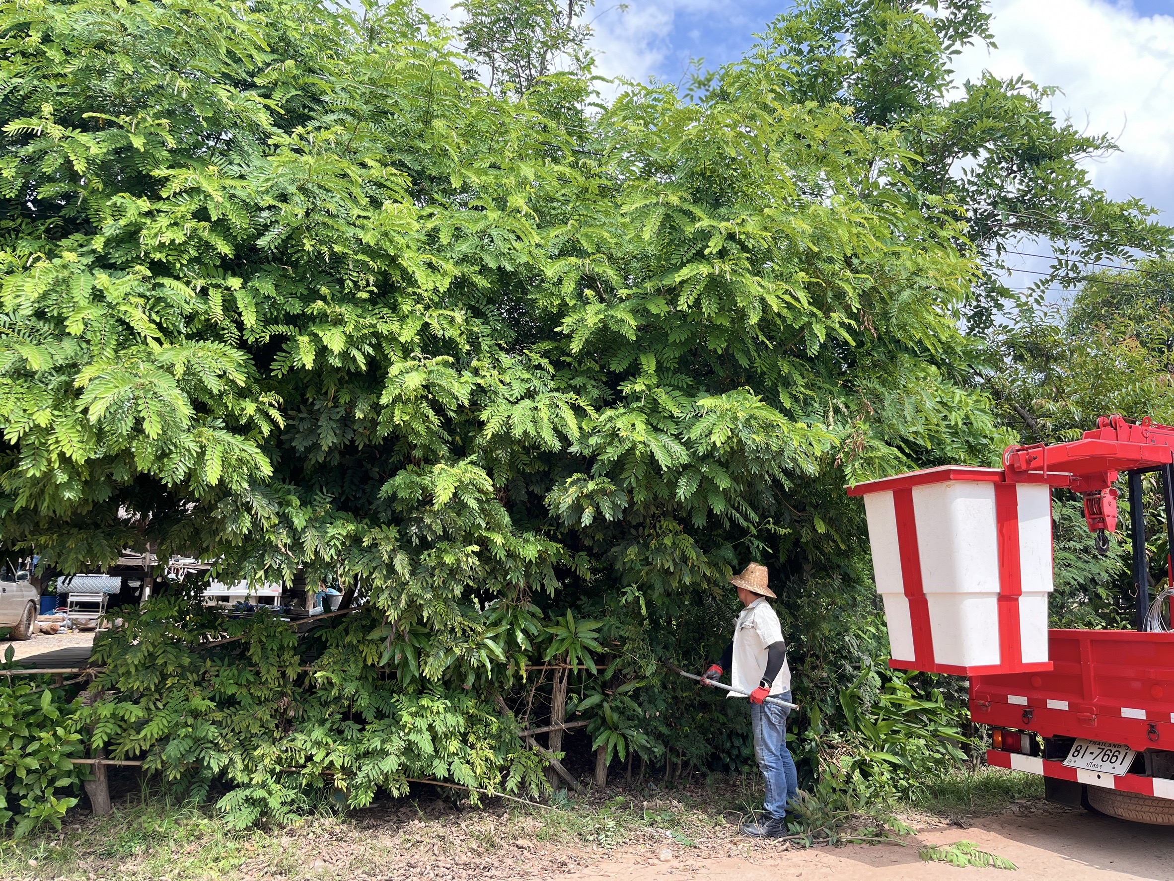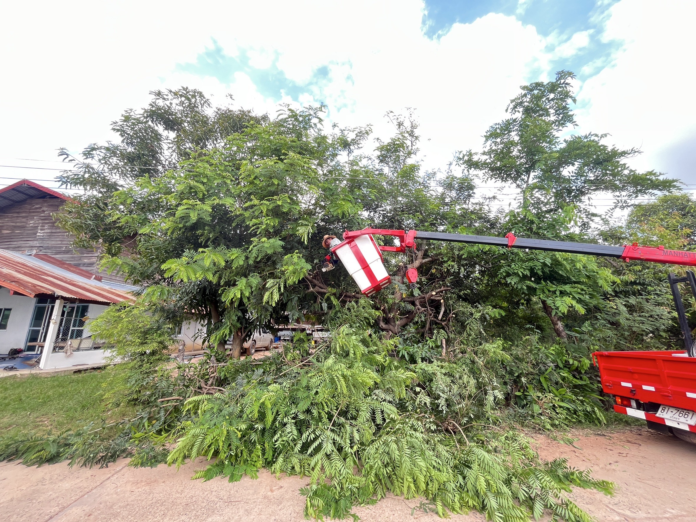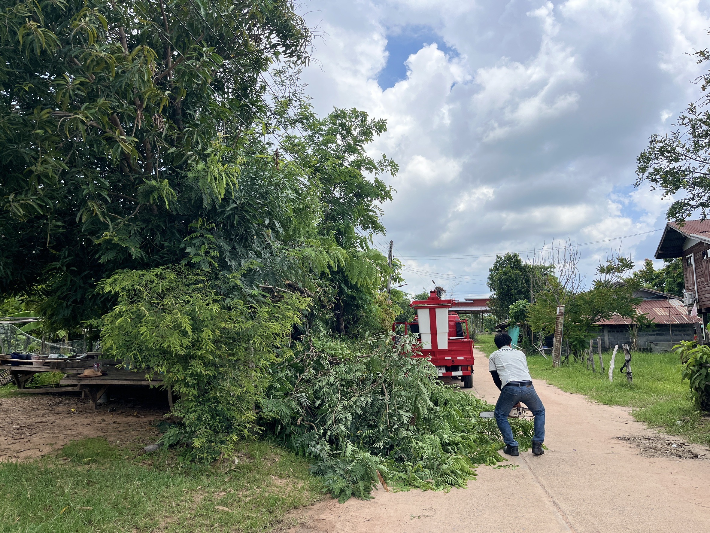 เจ้าหน้าที่งานซ่อมบำรุงไฟฟ้า กองช่าง ลงพื้นที่เดินสายดับเและติดตั้งโคมไฟส่องสว่าง(เพิ่มเติม) พร้อมตัดแต่งกิ่งไม้พันสายไฟ เพื่อป้องกันอันตรายที่อาจเกิดจากสายไฟฉีดขาด ในเขตพื้นที่บ้านหนองแซง หมู่ที่ 15 ตำบลโพนงาม อำเภอกุดชุม จังหวัดยโสธร