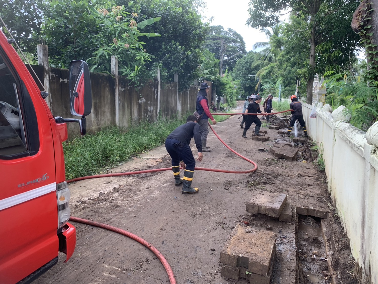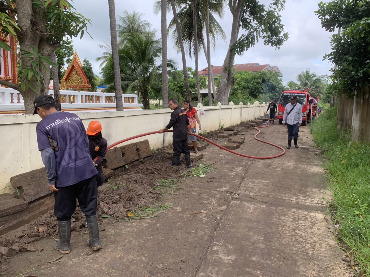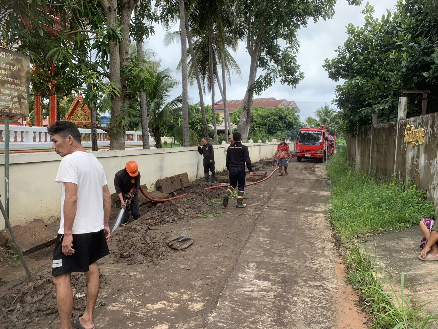 วันที่ 23 กันยายน 2568 เจ้าหน้าที่งานป้องกันและบรรเทาสาธารณภัย ลงพื้นที่ร่วมแก้ปัญหาน้ำท่วมขังเบื้องต้นให้กับชุมชน บ้านม่วง หมู่ที่ 5 ตำบลโพนงาม
