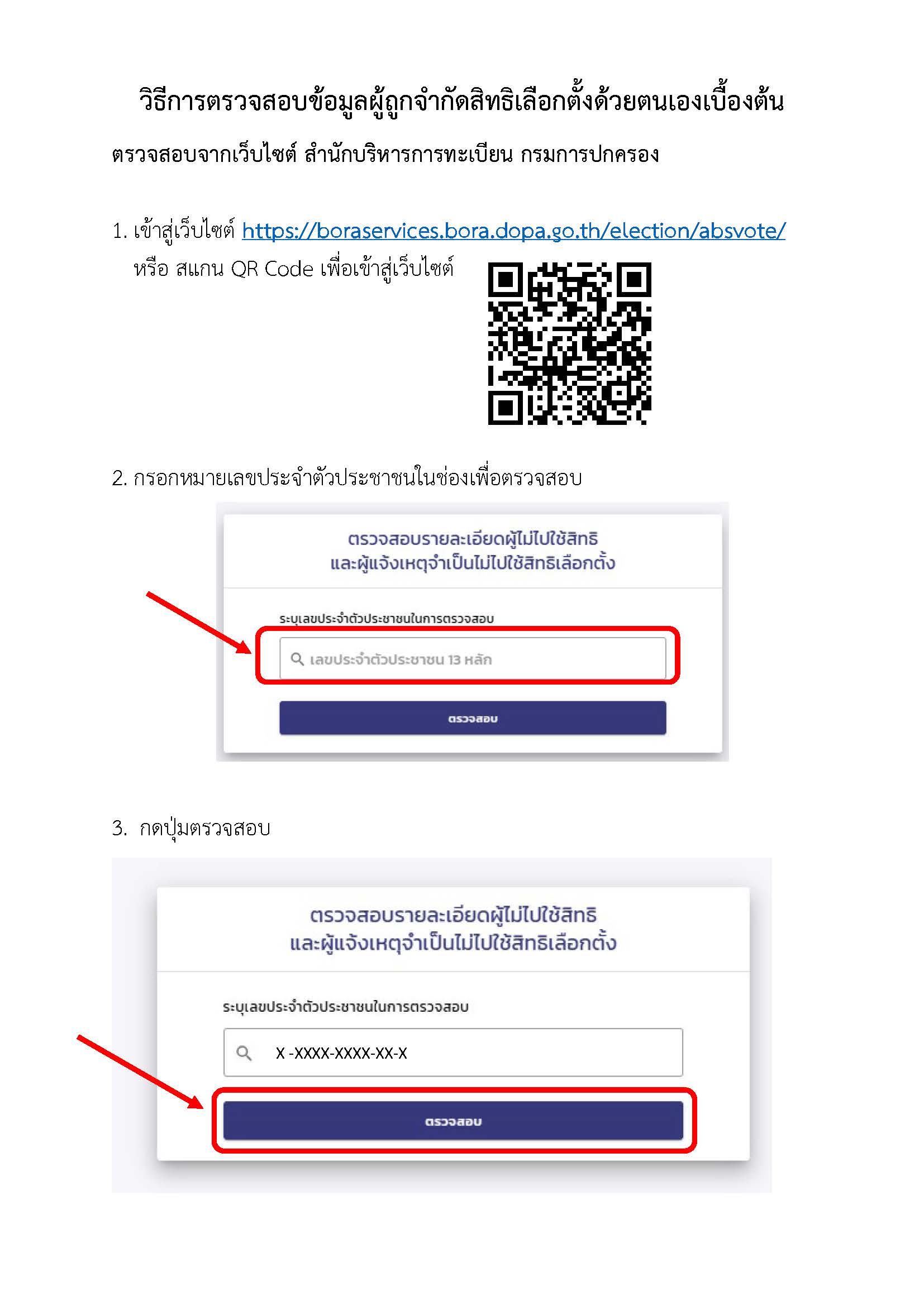 ประชาสัมพันธ์ ช่องทางการตรวจสอบสถานะการถูกจำกัดสิทธิสมัครรับเลือกตั้งเป็นสมาชิกสภาท้องถิ่นและผู้บริหารท้องถิ่น