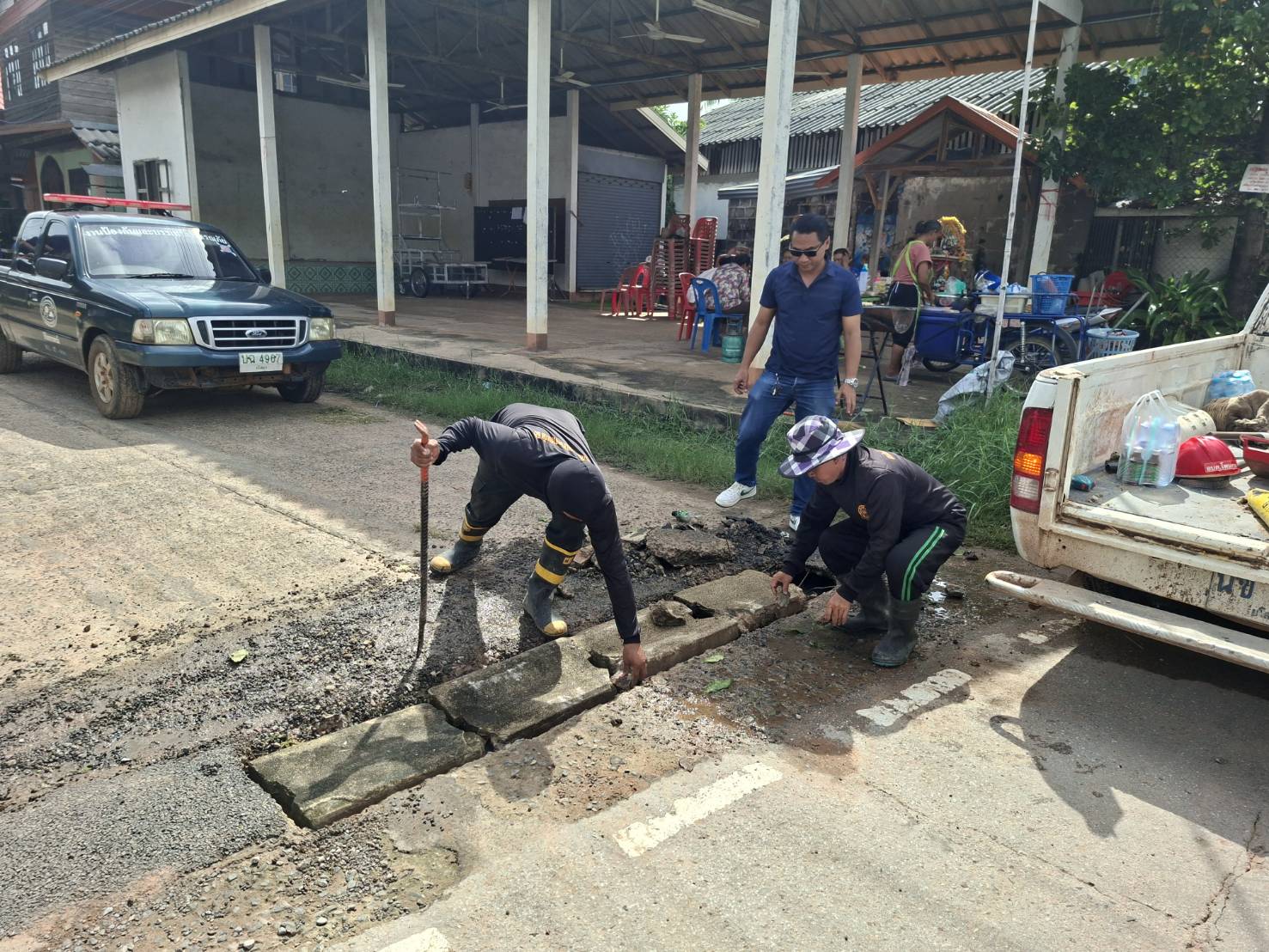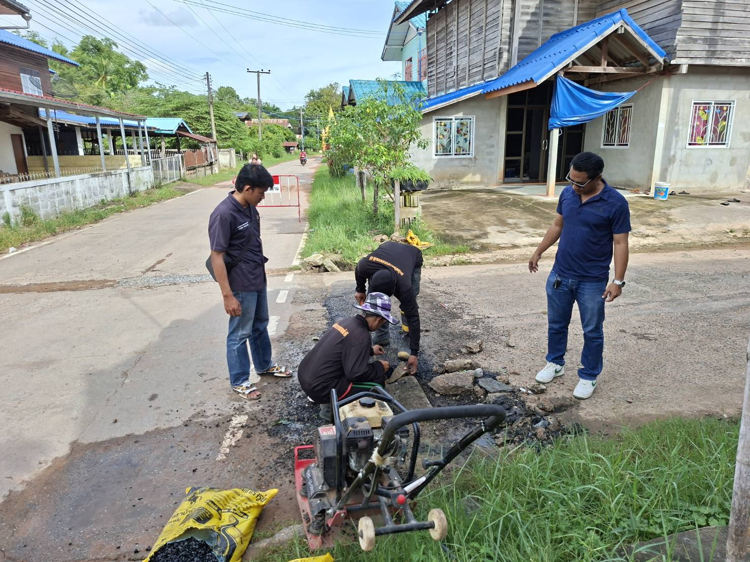 เจ้าหน้าที่งานป้องกันและบรรเทาสาธารณภัย ร่วมกับเจ้าหน้าที่กองช่าง ลงพื้นที่ซ่อมแซมถนนชำรุดภายในหมู่บ้านหนองแซง หมู่ที่ 3 เขตพื้นที่ตำบลโพนงาม เพื่อให้ประชาชนได้สัญจรไปมาได้สะดวก