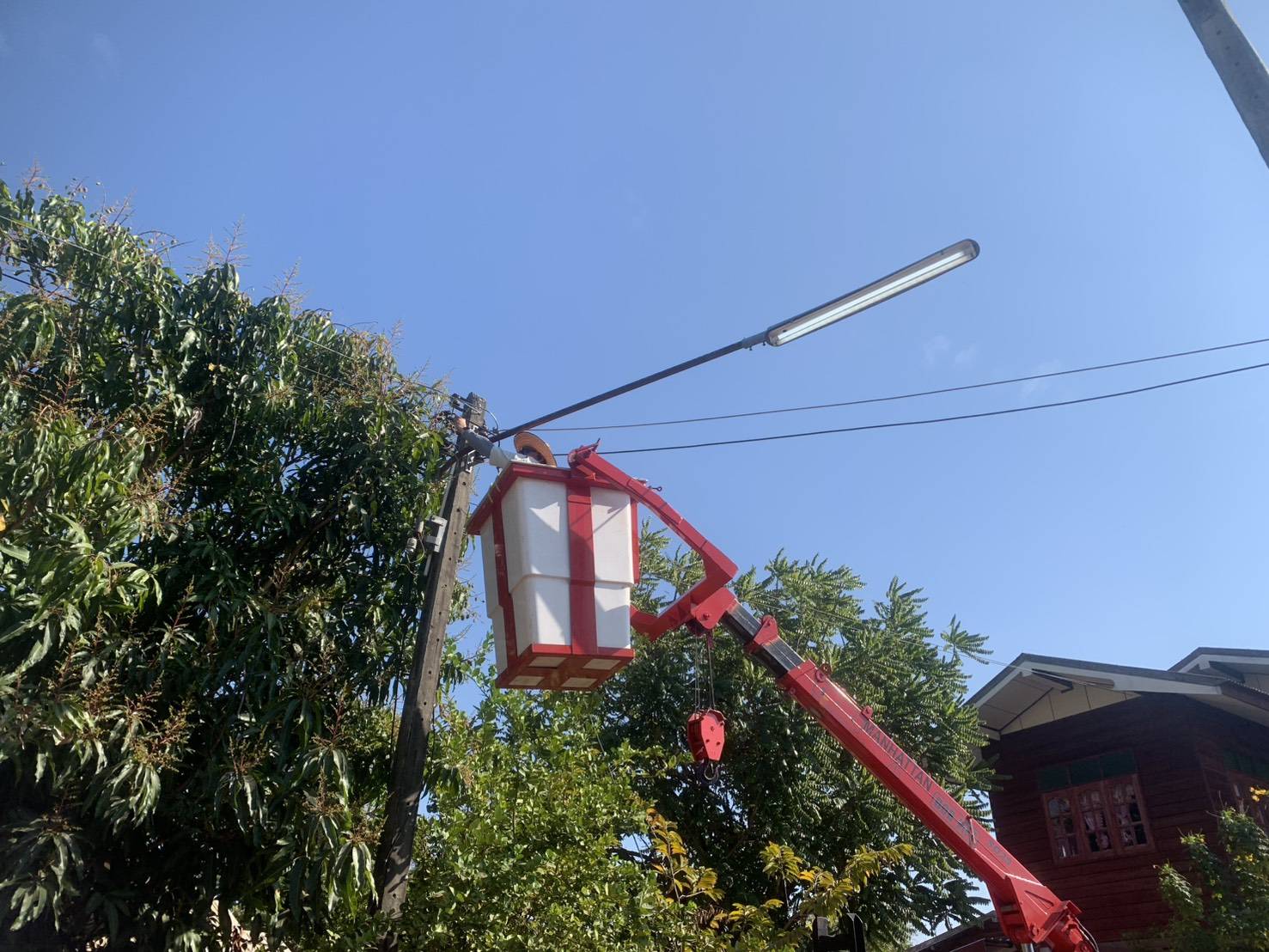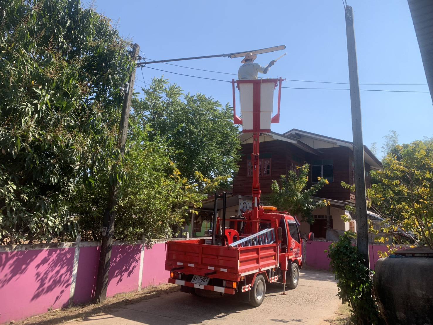 เจ้าหน้าที่งานซ่อมบำรุงไฟฟ้า กองช่าง ลงพื้นที่ซ่อมแซมระบบไฟฟ้าสาธารณะภายในบ้านนางาม หมู่ที่ 6 เพื่อลดความเสี่ยงจากการเกิดอุบัติเหตุบนถนน ทางแยก และทางเดินสาธารณะในช่วงเวลากลางคืน