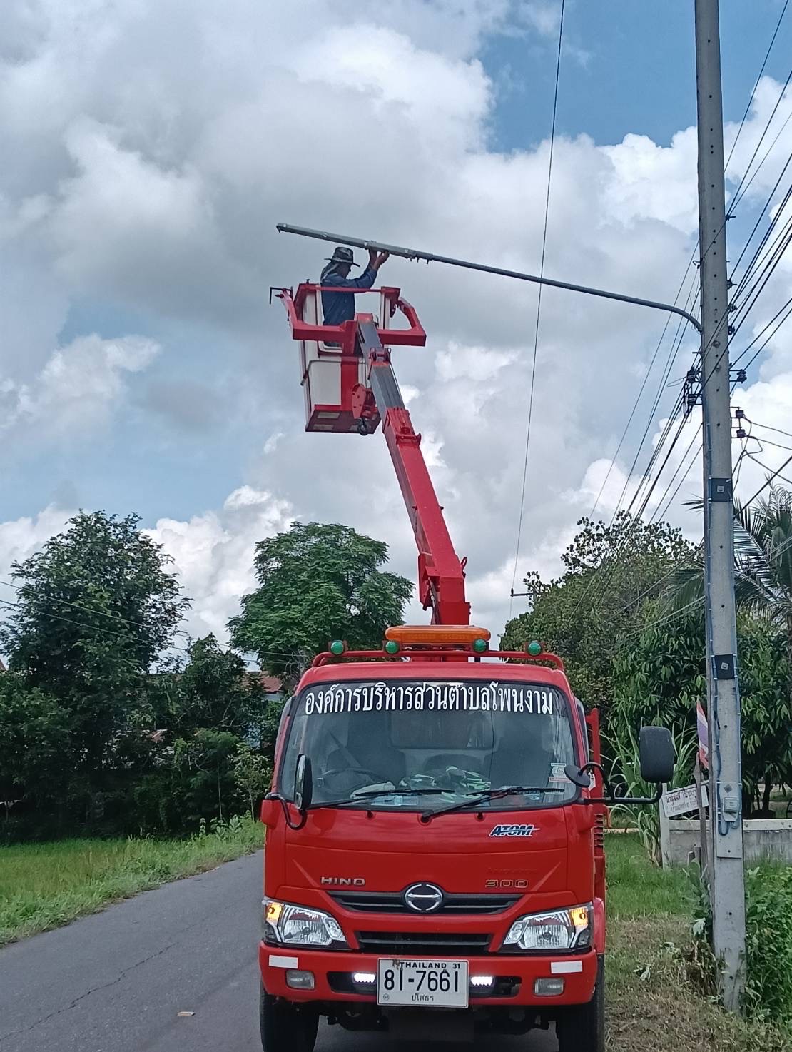 เจ้าหน้าที่งานซ่อมบำรุงไฟฟ้า กองช่าง ลงพื้นที่เดินสายดับเและติดตั้งโคมไฟส่องสว่าง(เพิ่มเติม) พร้อมตัดแต่งกิ่งไม้พันสายไฟ