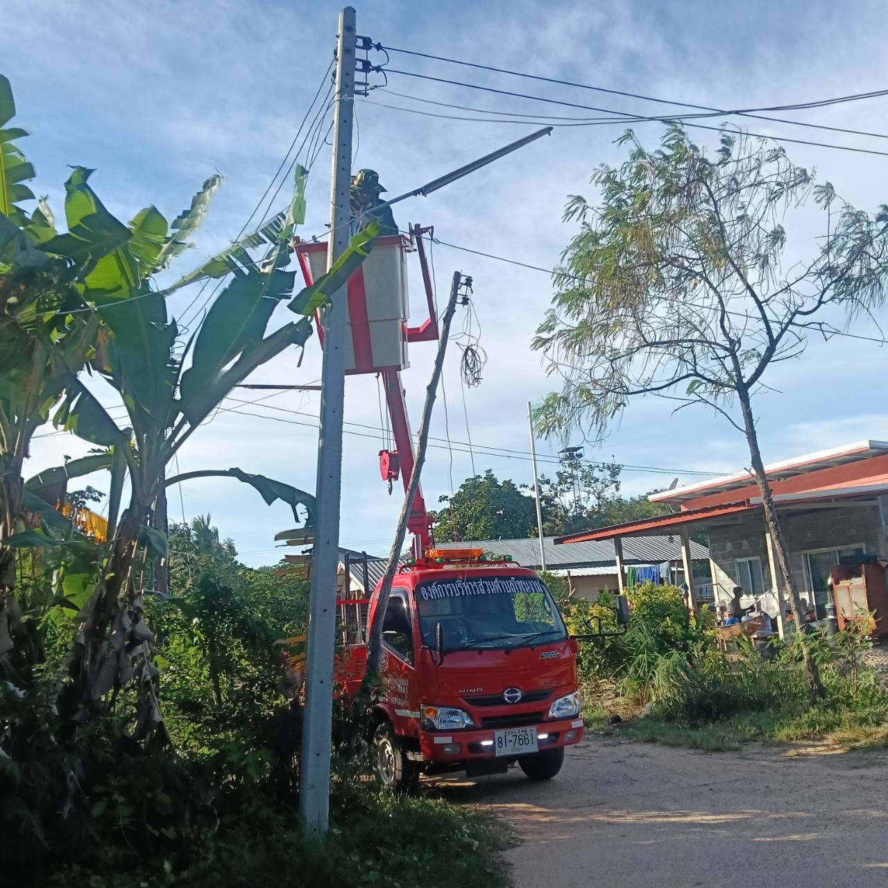 เจ้าหน้าที่งานงานซ่อมบำรุงไฟฟ้า ลงพื้นที่ซ่อมบำรุงระบบไฟฟ้าสาธารณะในเขตตำบลโพนงาม